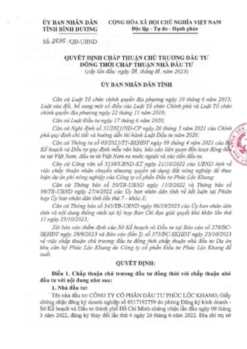 • Công ty Cổ phần Đầu tư Phúc Lộc Khang là nhà đầu tư hợp pháp
