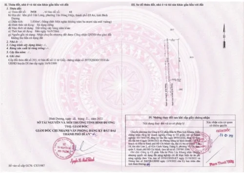 Giấy chứng nhận quyền sử dụng đất dự án TT Avio Dĩ An
