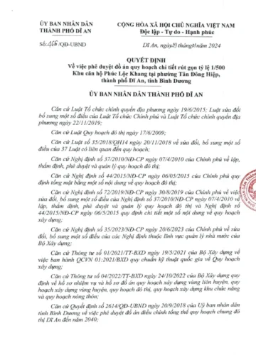 Dự án TT Avio đã được UBND TP. Dĩ An phê duyệt Quy hoạch chi tiết tỷ lệ 1/500 theo Quyết định số 466/QĐ-UBND ngày 29/01/2024.